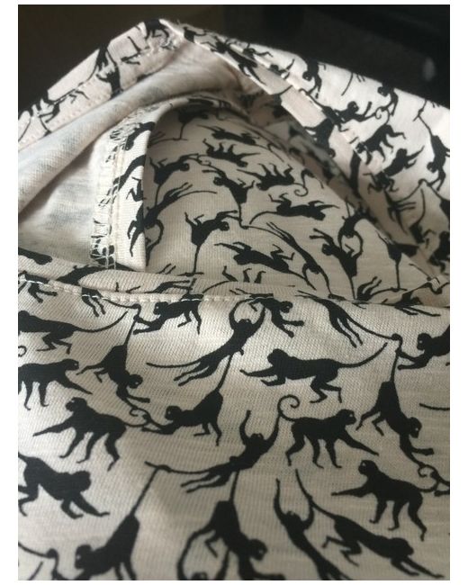 Beige Sleeveless Stretch Top with pattern of black monkeys. Scoop Neck. Armpit to Armpit 20". Tom Taylor Size 16/18.