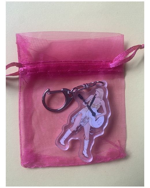 Show your love for Taylor Swift with this colourful keyring/bag charm. Made from durable plastic, this multicoloured keyring is perfect for everyone! Use it to accessorise your bag or keys, and never let your love for Taylor Swift fade away. The keyring is a perfect addition to any Taylor Swift fan's collection, and it is sure to make a statement wherever you go. Get yours now! All key rings have a protective plastic covering that should be removed once received! πŸ©·πŸ’› 🎢🎸🎀🎢 πŸ’›πŸ©·