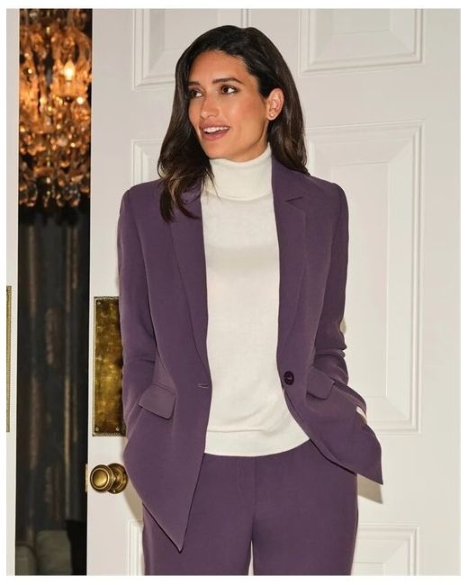 Elevate your wardrobe with the PURE Collection Purple Blazer, a versatile piece that brings a touch of elegance to any ensemble. Crafted in a regular size 12, this blazer features a vibrant purple hue that's as striking as it is timeless. The outer shell is made from durable polyester, ensuring this garment holds up to both everyday wear and special occasions. Designed for women who appreciate a blend of classic style and modern flair, this blazer boasts a sharp silhouette that speaks to its high-quality construction. With its sleek design and neutral interior, it pairs effortlessly with your favourite trousers or dresses, making it an indispensable addition to your professional or social attire.