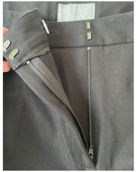 New without tags smart black trousers from Pure Collection. 95% cotton, 5% elastane, classic, smart and very flattering. Zip fastening, two pockets on the front and back. Size Uk 14.