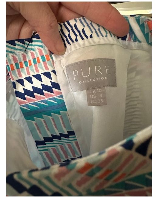 It has that classic Pure flattering pencil skirt fit. The colours are stunning and make it so versatile to go with so many things, casual, for or dressy. Spare button & thread attached.