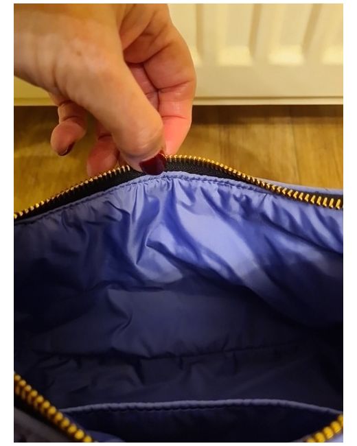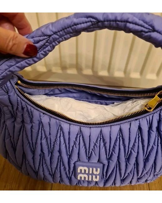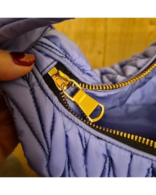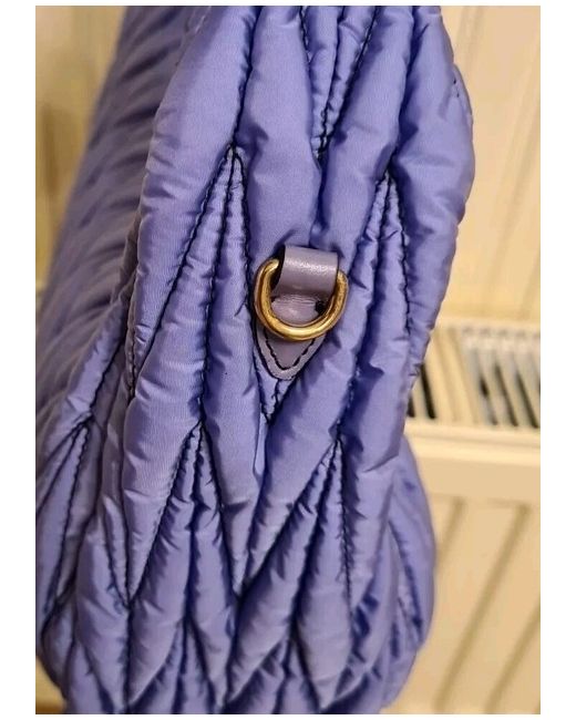 The bag has a height of 15cm, a width of 33cm, and a depth of 12cm, making it the perfect size for travel, parties, weddings, or casual outings. The interior lining is also made of recycled nylon in a matching lilac colour, while the hardware is gold in tone.