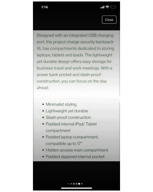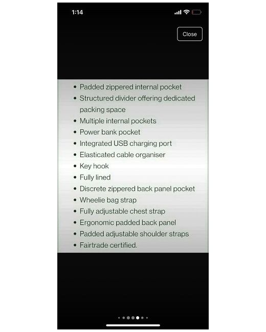 Nice bagpack perfect for weekend getaways Scratch resistant with 20L capacity Lightweight: 1450g Dimensions: 32 x 47.5 x 20 cm Sturdy body with padded back support 17inch laptop sleeve and port for power bank Perfect for business trips or weekend getaways Comes with the original box