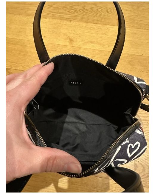 Wristlet Ladies Bag Brown Leather Red Fabric Zip Closure Logo