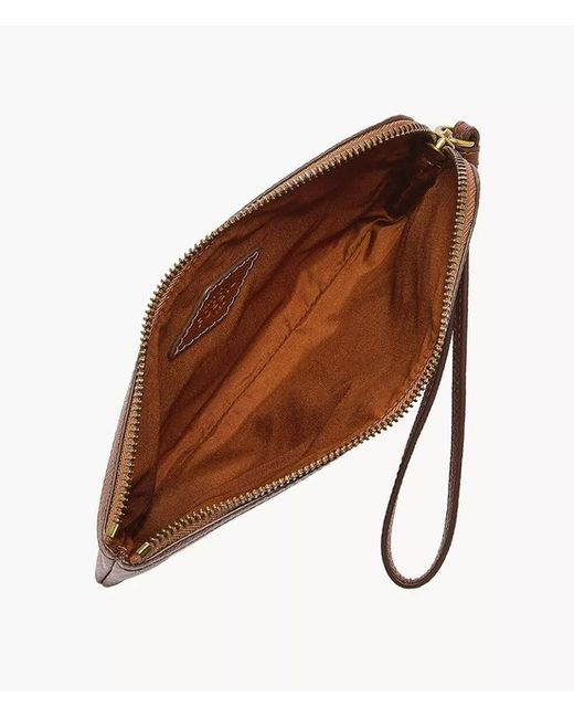 This leather wristlet features1 wristlet strap old english brass hardware. Silhouette: Wristlet. Material: Leather.