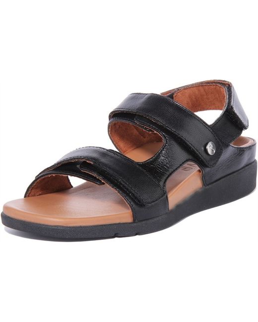 Aruba Adjustable Strap Leather Womens Sandal 3 8 di colore Nero