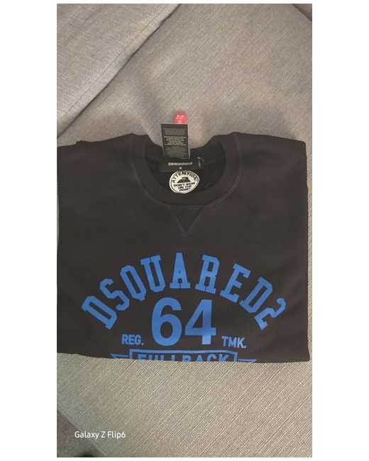 Crafted by the renowned brand Dsquared2, this black an blue sweatshirt presents a blend of comfort and style for the modern man. Available in a size M, it features a classic round neck and offers a regular fit that ensures ease of movement and a timeless silhouette. The pullover sweater is fashioned from high-quality cotton material, offering both warmth and breathability. Its versatile black hue makes it an effortless addition to any wardrobe, suitable for a variety of occasions, from casual outings to more refined settings.