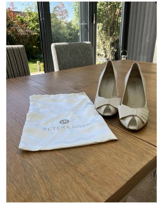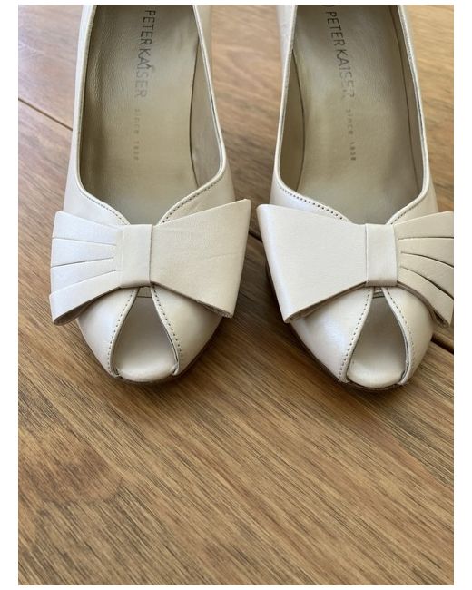 Beautiful cream open toe shoes with original box, never worn. Bought for wedding