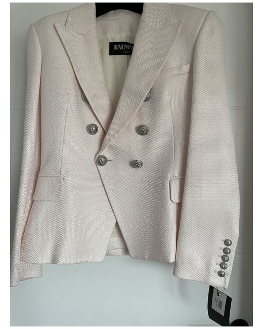 Beautiful light pink Balmain blazer with silver buttons, size 42 excellent condition, never worn . Pics don’t do justice to this jacket