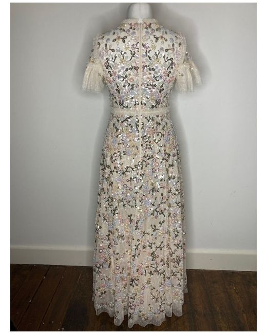This dress is available in size 12 (UK) or US8, and is suitable for all seasons. It is very feminine and pretty. Needle & Thread long dress. The dress is made from high-quality polyester tulle material.