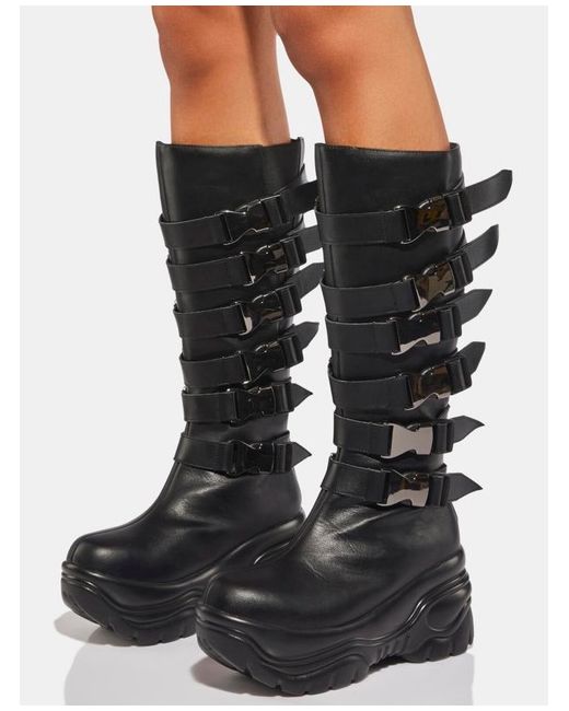 FAN ALL FLAMES Trinity Platform Boots UK 8 EU 41 da Women di colore Nero