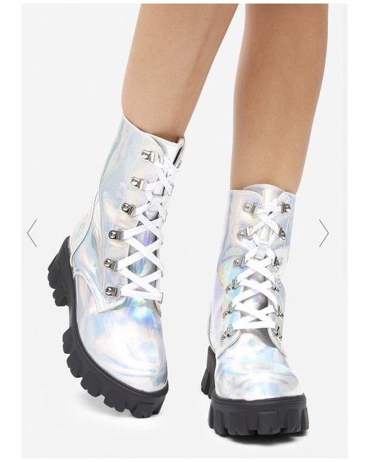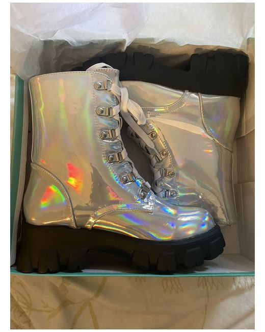 Dolls Kill holographic Boots. UK SIZE 4. Absolutely perfect for festivals, they are stunning. Brand new and in box. I stupidly bought them thinking they were a UK size 6 so they have never been worn. Selling as is with free postage.
