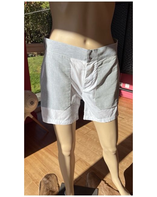 Embrace the summer breeze with these stylish Maison Margiela shorts. The grey and white chino design is perfect for any occasion, from casual to formal, and features a flat front with buttons and clasp closure. With pockets for added convenience, these shorts are made from a blend of cotton, polyester, and linen, making them both comfortable and machine washable. The mid-rise fit and regular size type are flattering for any body shape, while the 13cm inside leg adds a touch of sophistication. These shorts are perfect for spring and summer, and are sure to make a statement wherever you go.
