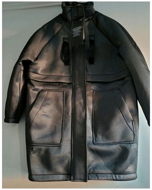 Alexander Wang X H&M Oversized Hooded Scuba Parka Coat w/ Down Inner Liner. With its sleek grey hue, this piece marries sophistication with versatility, allowing for an array of styling options from casual.