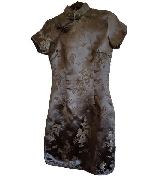 This stunning black dress features a traditional Chinese stand collar, short sleeves, and a side slit for a touch of allure. The intricate dragon pattern is beautifully embroidered on a silky-smooth fabric.