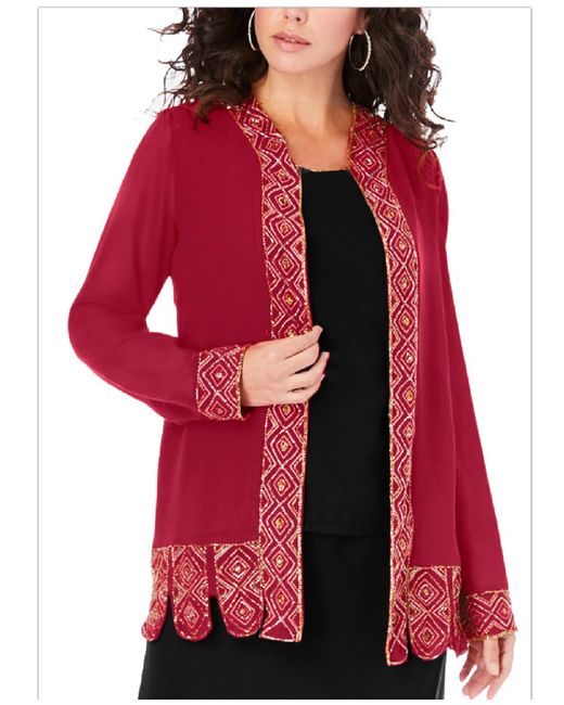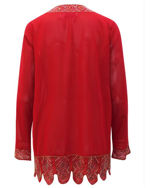 Ruby Red Beaded Sequin Trim Long Sleeved 30" JACKET rrp £59. Designer Size 16. Woven jacket with embellished trims to all edges and sleeve ends, long sleeves and hook fastening. length of jacket is 30in / 76cms.