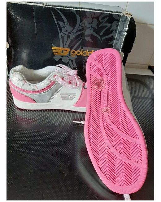 Golddigga white and pink Trainer Size 7. Condition is New with box. Box is a bit tatty but good I only post on a monday due to this pandemic but if you need them sooner please ask Thank you fir looking Dispatched with Royal Mail 2nd Class.