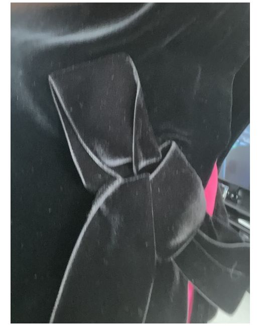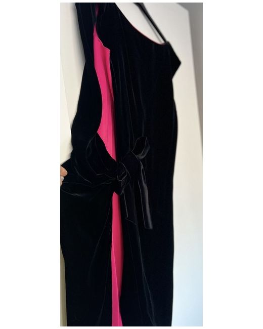 Dress. Black velvety cocktail dress with pink details on a side