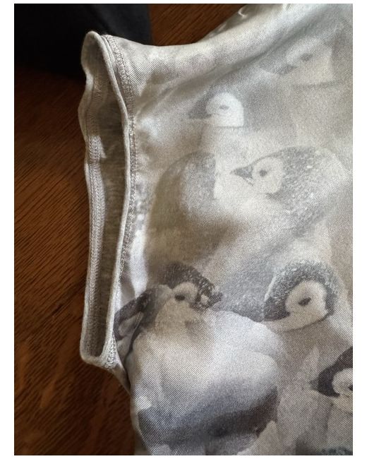Cute Marc Caine silky T-shirt with penguins on front , cotton grey on back , would look stunning dressed up with leather trousers or dressed down with jeans .