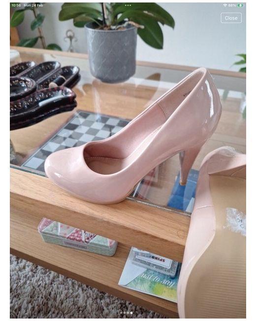 These Shoebox Nude Courts are stylish high-heeled shoes in a beige colour, with a stiletto heel measuring between 7.6-10 cm. These women's court shoes have a round toe shape and are designed with a sleek and elegant silhouette. The UK shoe size is 5, making them a flattering choice for those looking for a chic and sophisticated heel. Perfect for adding a touch of class to any outfit, these Shoebox Nude Courts are a versatile and fashionable option for any wardrobe.