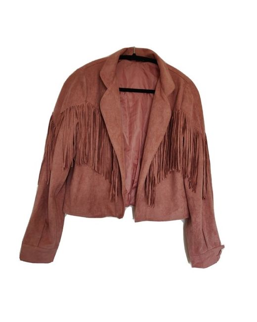 A pink faux suede fringed jacket by Sister Jane. Size medium. Would fit a size 8-10.