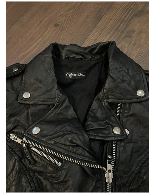 Crafted by Myleene Klass, this women's biker jacket is a stylish addition to any wardrobe. The classic black 100% leather exterior exudes sophistication, while the zip closure ensures a secure and comfortable fit. Perfectly sized at 10, it caters to the regular build, maintaining a sleek silhouette. The jacket's design seamlessly blends functionality with fashion, making it a versatile piece for various occasions. Whether it's a casual outing or an evening event, this jacket promises to elevate your attire with its timeless appeal and chic style.