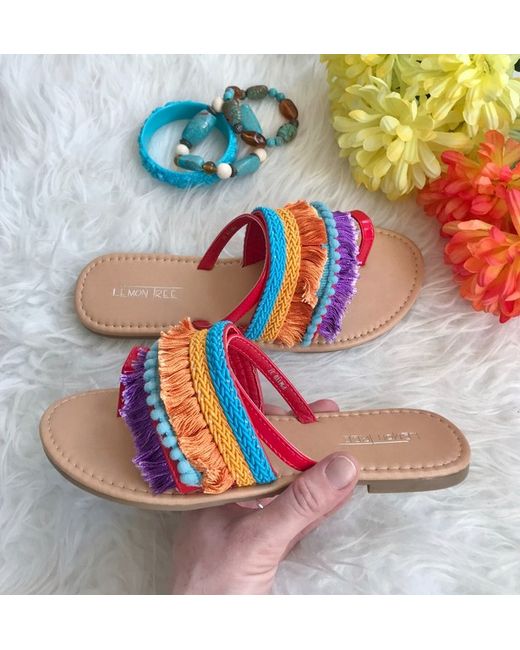 Ladies Boho Colourful Flat Toe Loop Sandals 3 BNIB