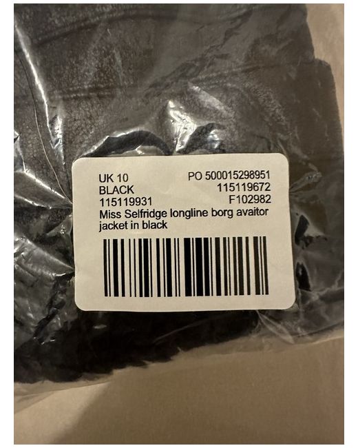 Miss selfridges black uk10 aviator jacket. Length (measured midback from top of collar to end of jacket): 66.5cm/26inches Shoulder to shoulder: 41-42cm/16.5inches
