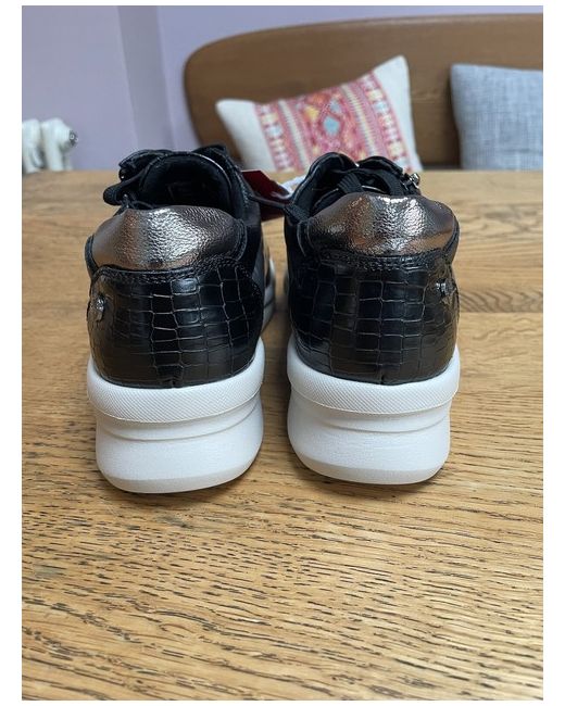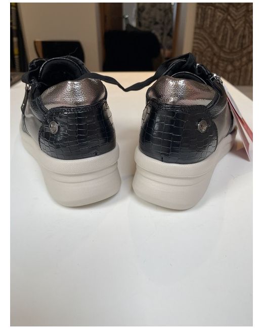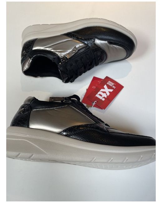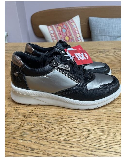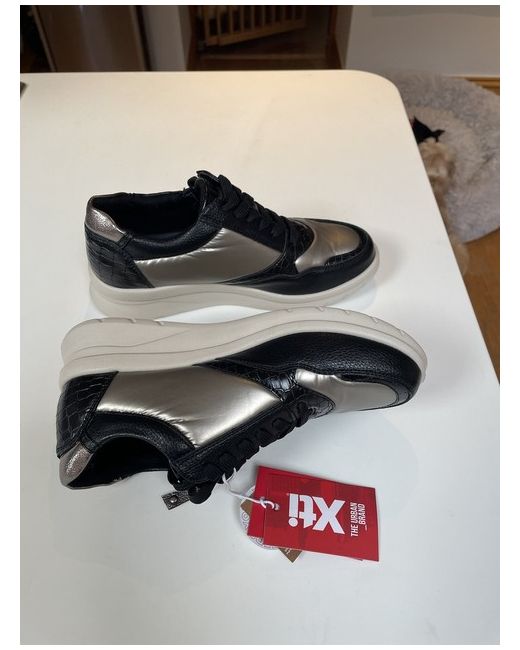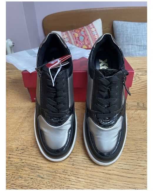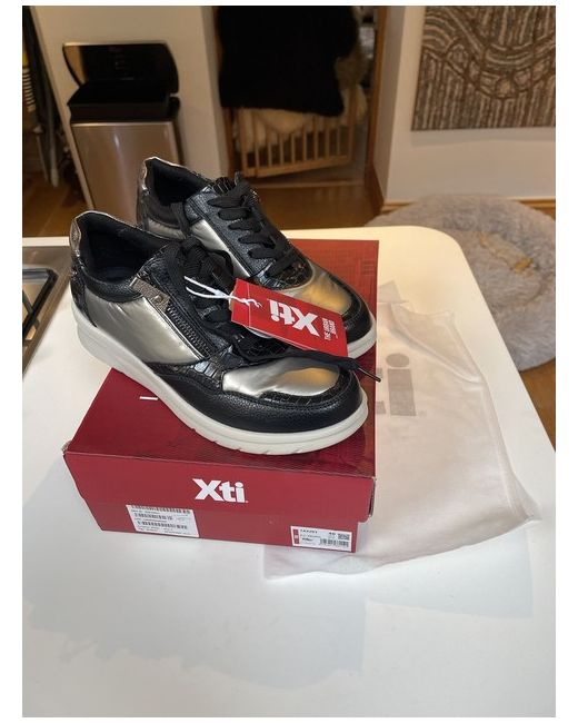 XTI brand new with tags women’s trainers, black and bronze, with laces and side zip, cream sole, size 6. With box