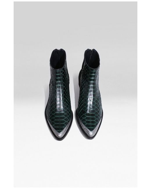 Show stopping boots, great with any outfit, smart casual, chic or formal. Upper Leather, Inner Leather, Sole Leather, 60% Python skin, 40% Leather. A pointed toe. Grey Suede to the sides and Black Suede to sides and back.