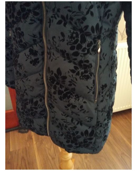 JESSICA GRAFF PADDED PATTERNED JACKET SZ.M This jacket is stunning, lightly padded with black velour type floral pattern over the fabric. Collar can be buttoned for those colder days or open if you prefer. 2 zipped pockets complete the look