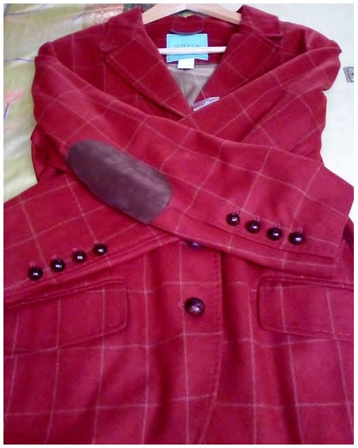 BNWOT Wool/Cashmere blend rust checked jacket with elbow patches 12