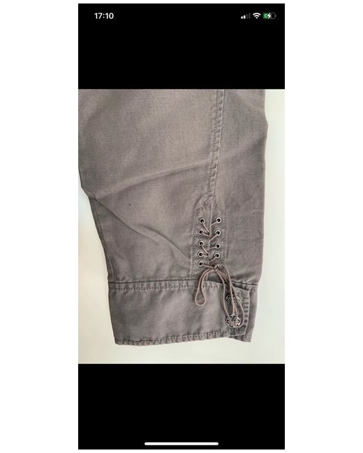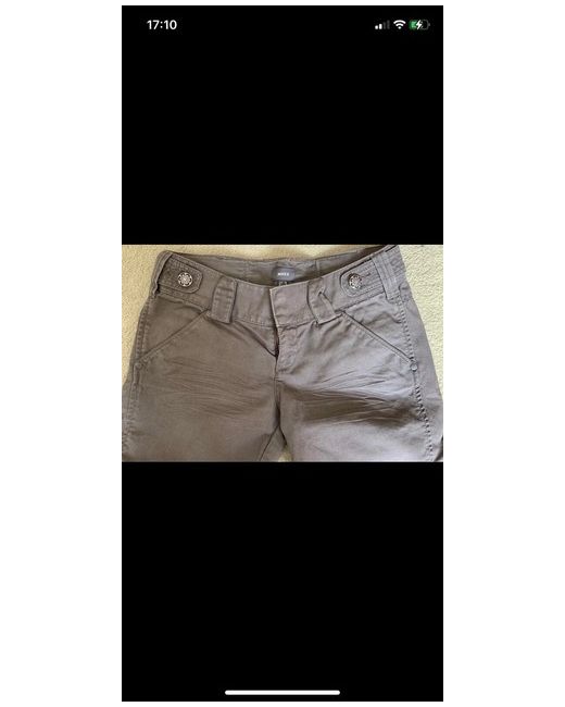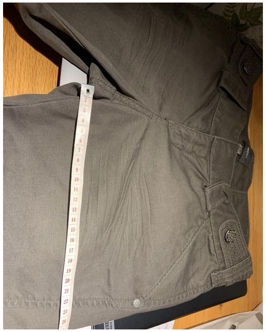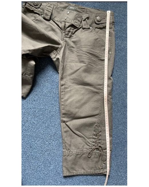 Dark khaki coloured fitted shorts with lovely details inc silver buttons, the lace ups at the end of the trousers legs. Has plenty of pockets and is barely worn! Inside leg is 47cm, waist is 38cm, total length 69cm.