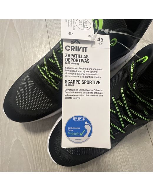 Uk size 11 Europe size 25 Usa size 11 The Crivit running shoes, trainers designed in a sneaker style. These shoes are suitable for running and provide comfort and support for active wear. The brand Crivit is known for producing quality sports footwear, making these running shoes a reliable choice and a durable and stylish option for fitness activities.
