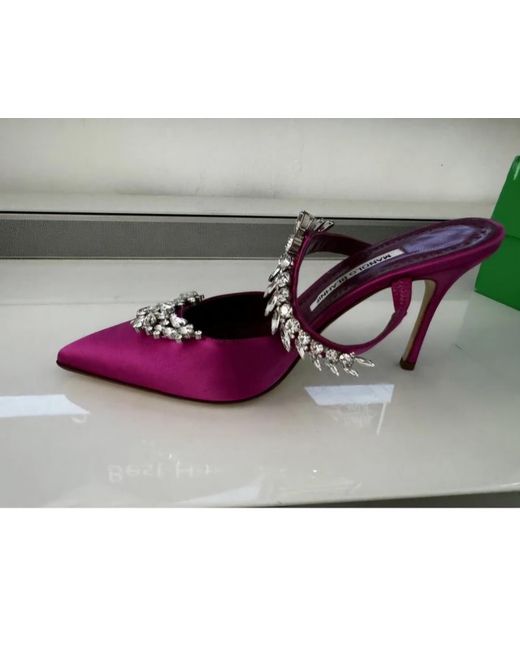 Elevate your ensemble with these chic Manolo Blahnik heels, a perfect blend of sophistication and style. Cast in a vibrant pink hue, these pointed-toe mules boast a sleek leather upper and a comfortable mid-heel measuring between 5-7.5 cm, ideal for day-long wear. The leather insole and lining ensure a luxurious fit, while the fabric outsole offers durable wear. With a size 39 EU, these heels correspond to a UK size 6 and a US size 8. The standard shoe width accommodates a variety of foot shapes, ensuring a snug fit without compromising on comfort. Whether you're dressing up for a summer soirée or adding a touch of elegance to your everyday look, these stilettos are a versatile addition to any wardrobe.