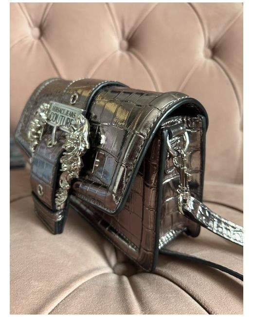 Add a touch of luxury to your outfit with this stunning Versace Jeans handbag. Crafted from high-quality leather and with a metallic silver exterior, this crossbody bag is perfect for any occasion. The brand is synonymous with quality and style, making this a must-have for any fashion-conscious woman. Designed for the modern woman, this bag is both practical and stylish. The spacious interior ensures that you have enough room for all your essentials, while the durable strap ensures that it stays securely on your shoulder. Whether you're heading to work or out for a night on the town, this Versace Jeans handbag is the perfect accessory to complete your look.
