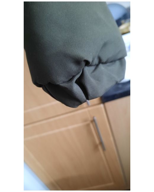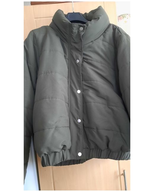 New khaki padded jacket. Full zip fastener with press stud fastenets. Elastic bottom sleeves and to bottom if jacket. Side pockets with press stud fasteners. High padded collar. Length 24 ins. Arm to arm 25 ins. Very cosy jacket