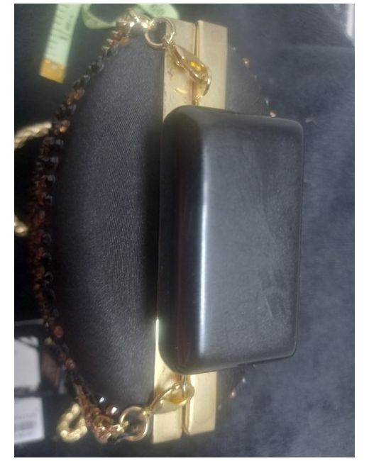 Wow! This bag is extra special. Black fabric feel hard case with sparkle Biba logo diamante. Gold chain, clasp fastening. Perfume bottle shape. 7" x 5" incl clasp so mini size, not suitable for larger mobile phones. Such an usual & limited edition piece. Although new with tags, there are some imperfections on the hardware. RRP £149 so a great price to add some iconic vintage glamour to your wardrobe or collection.