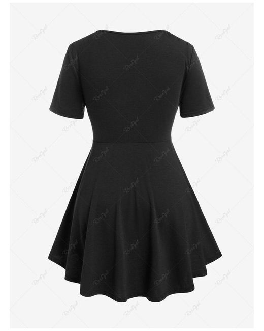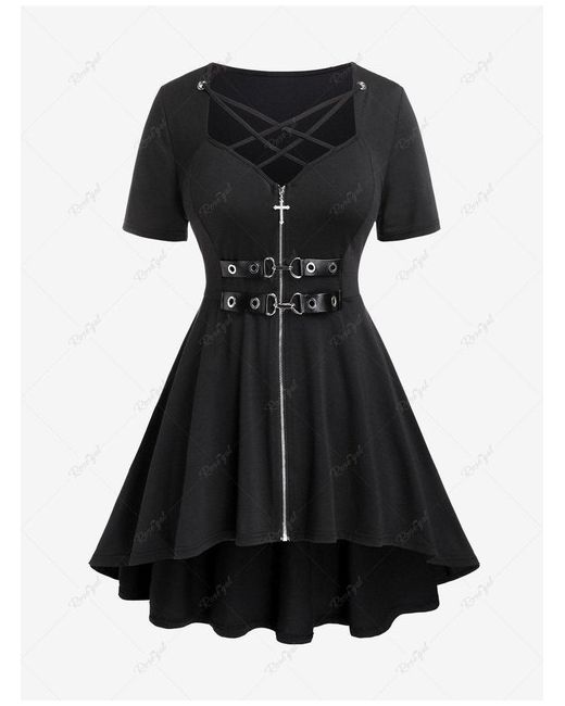 Embrace your gothic style with this Rgothic plus size top, designed to make a statement. The top features an alluring criss-cross sweetheart neckline, enhancing the piece with a touch of elegance. With its short sleeves and high stretch fabric, it promises comfort and ease of movement, perfect for any casual occasion. Crafted in a versatile black hue, this top is a must-have for your spring and summer wardrobe. The strategic cutouts and strappy details add a contemporary edge, while the zip front closure ensures a secure and flattering fit. Whether you're heading out for an evening stroll or meeting friends, this top will surely turn heads.