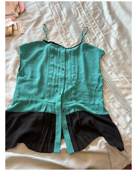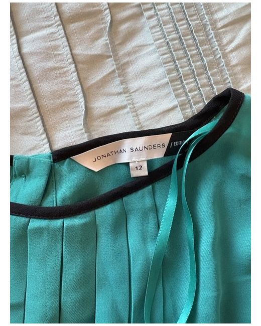 Elevate your wardrobe with this stunning Jonathan Saunders top. The blouse boasts a beautiful turquoise and black colour scheme that is sure to turn heads. The sleeveless design makes it a perfect choice for warmer weather, and the regular size ensures a comfortable fit. Crafted from high-quality materials, this top is a must-have for any fashion-conscious woman. The brand name adds a touch of luxury to your outfit, making it perfect for special occasions or a day at the office. Add this blouse to your collection today and enjoy the perfect combination of style and comfort.