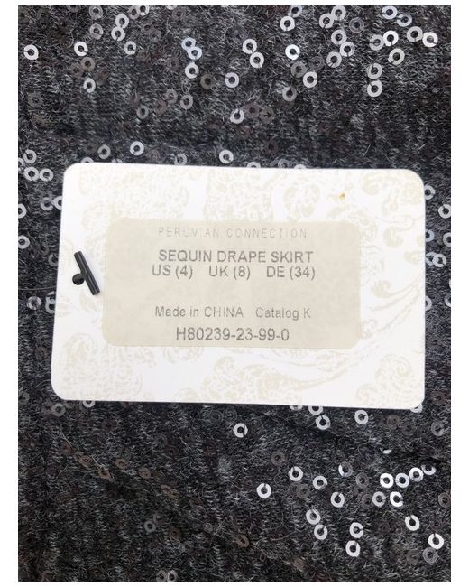 Peruvian Connection Pewter Grey Sequin Drape Skirt UK Size 8 (US 4) Waist: 30in Length: 19in Brand new with tags Free UK postage Light up the room in shimmery pewter sequins. The glamorous skirt is detailed with a softly shirred front pleat. Acrylic (80%) and nylon (20%).