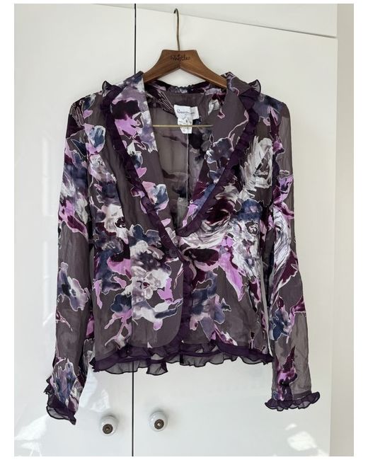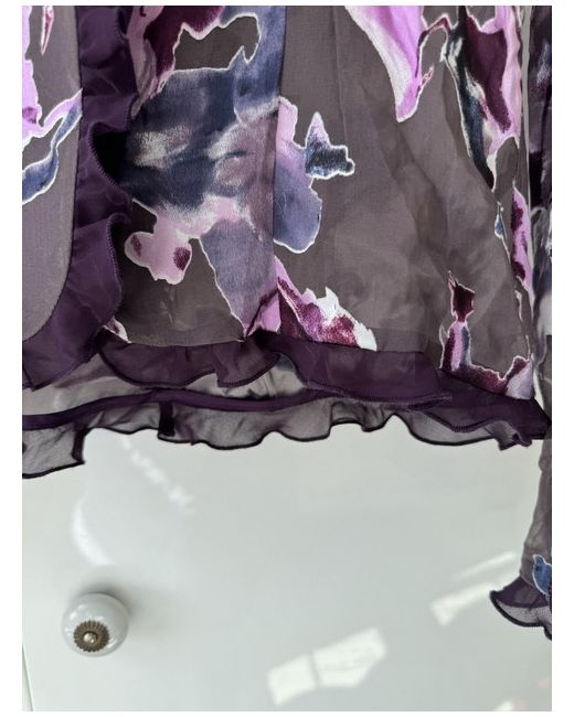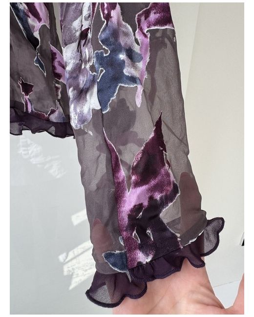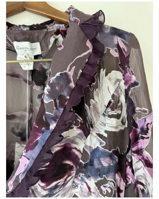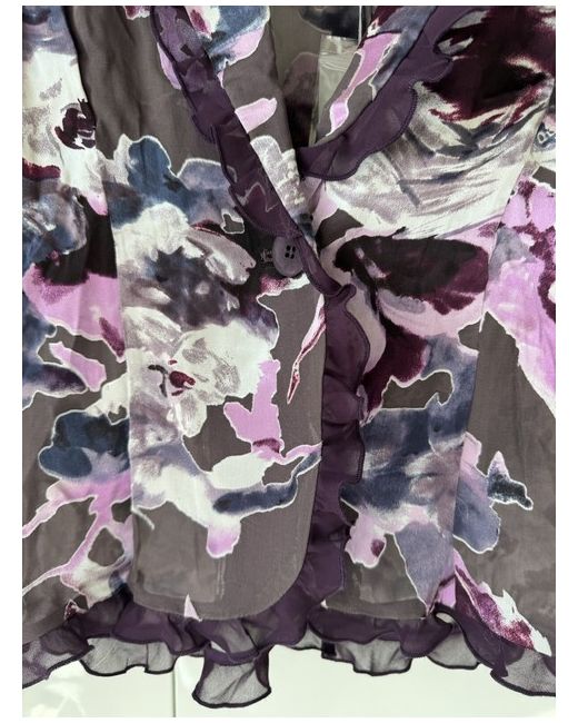 30% silk, sheer fabric, frill neckline and cuffs, one button, would work great over strappy dress/ top. New with tags. Length 22in, pit to pit 17in.