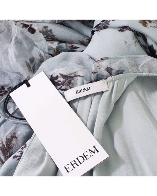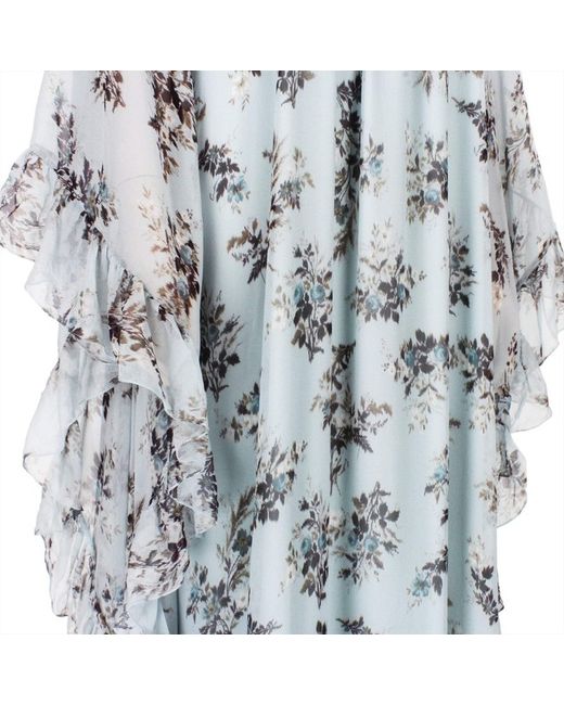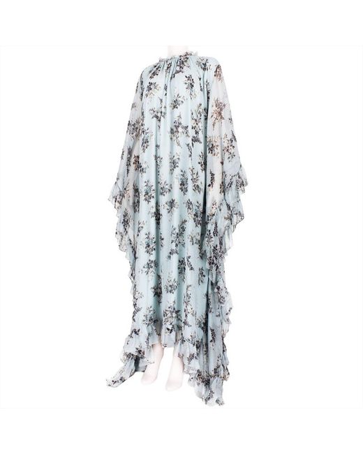 Erdem Dress Erdem Darance Floral Maxi DressColour: Pale blue, white and greyMaterial: 100% silk. Lining 73% acetate, 27% silk. Erdem Darance floral maxi dress in a pale blue silk chiffonA kaftan style dress which is cut for a relaxed floaty fitLight frill detailing to hemlinesSemi sheer loose fitting draped sleevesTie fastening to back of neck.