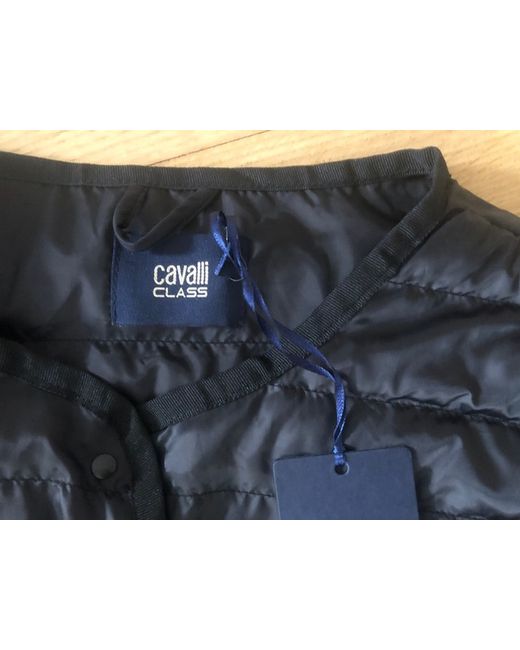 Cavalli Class circular leather tab to arm. Genuine Cavalli Class Spring-Autumn Jacket. 2 large internal pockets and 2 side seam slit pockets. Hand washable Popper fastening at front. Full length rear nape of neck to hemline 63cm.