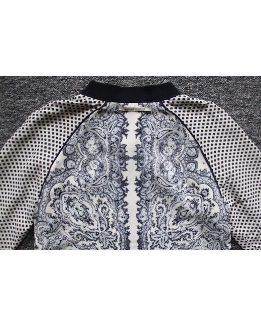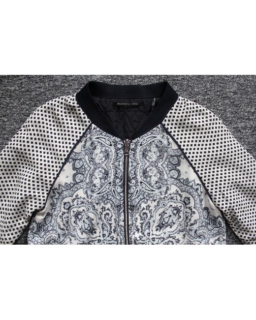 Lovely patterned bomber style jacket by Maison Scotch.Size 1, closer to S or UK10-8/10. Inner side is very dark navy I'd say, not black. length 57cm / 22.5". New and only tried on. RRP over£100. hem 47cm / 18.5" and adjustable with strings.