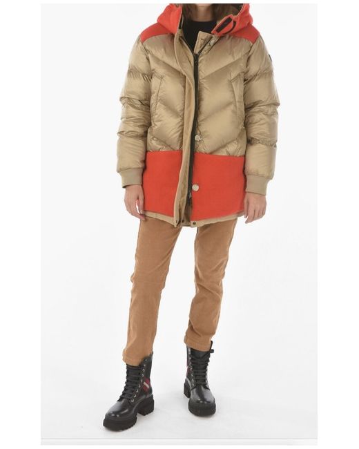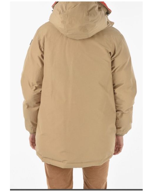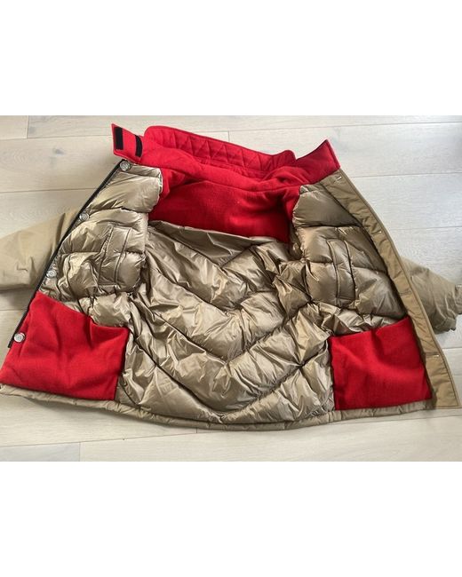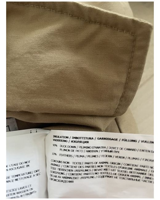 QUILTED LINED LOGO 2 POCKETS HOOD LONG SLEEVES ZIP CLOSURE BUTTONS REVERSIBLE FRONT CLOSURE BEIGE MATERIALS: CO: 60%, PA: 40%, PADDING: 90% DUCK DOWN, 10% FEATHERS Armpit to armpit is approximately 24in Length is approximately 32in PET AND SMOKE FREE HOME PLEASE LOOK AT MY OTHER ITEMS