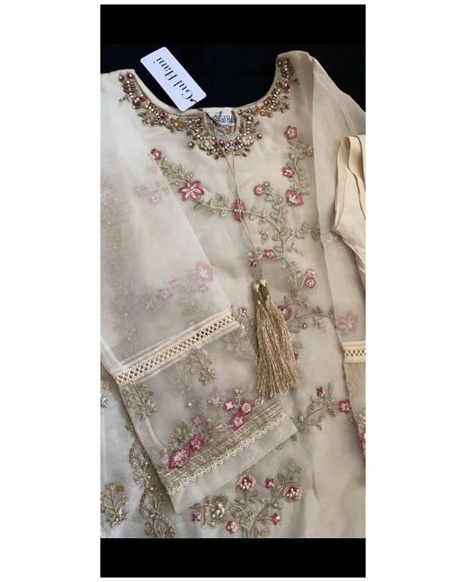 Gul Hani 3 Piece Suit Size Small. Organza Silk Lawn Kameez Nude beige colour Worn for a few hours on Eid Originally bought for £85