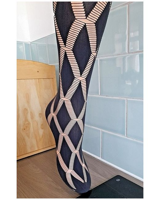 From Verdissima "Diamond Lattice", Anthracite Grey tights with a large diamond pattern with a lattice around each diamond, all over the legs and up to the waist band. The toes are covered so that the toes do not get caught in the lattice.
