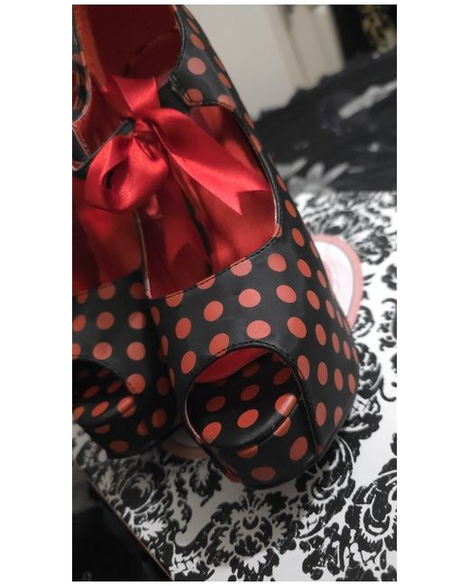 TEEZE-25 5 3/4 Inch (14.6cm) Heel, 1 3/4 Inch (4.5cm) Concealed Platform, Satin Polka Dots with Matching Satin Bow, Peep Toe Pump tried on but never worn.