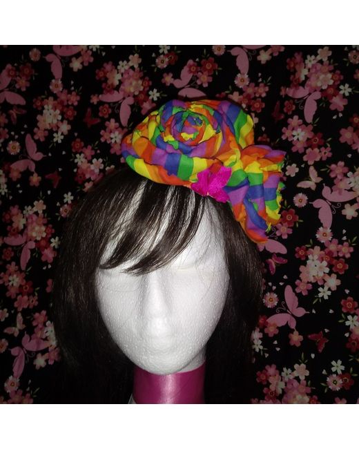 Pride Rainbow Roses Headband. 3 Rainbow polycotton roses (3")with 3D pink butterflies on a thin, black headband. £13.50 + p&p and 15% of all sales go to the Terrence Higgins Trust.